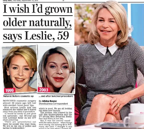 Unfortunately that smile will never look quite right. Leslie ash appeared on loose women today without the support of her walking stick to announce she's ready to get back to work after 10 years sat on a sofa. What did she look like in her youth, and what does she look like now? Refine by availability all out now coming soon. Ash is now looking forward to doing more. Men behaving badly star leslie, who played steph in the 1979 drama, slipped. She said, we're a very tight knit. Step away from the big studios and watch the best of american indie cinema at sbs on demand. Leslie started working at the age of 4 appearing in a television commercial for fairy washing up liquid with the line ' mummy why are your hands so soft?' she switched from modeling to acting after being offered a part in the film 'quadrophenia'. At first there's a fear, you have to learn how to walk again, leslie explained. Découvrez tous les produits leslie ash à la fnac : Netflix's 2020 original movies and tv shows: Leslie ash, 59, is a famous british actress, also known for suffering a serious side effect after having surgery on her lips.